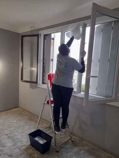 L’intervention a débuté avec l’aération de l’appartement. Puis, nous avons procédé au nettoyage des portes avec les accessoires adaptés. Nous avons poursuivi par le lustrage des fenêtres vitrées et des cadres de vitres de l’habitat. Pour cette opération, nous avons utilisé les techniques et les équipements adéquats. Nous avons continué avec le lavage de la cuisine, des sanitaires et de la douche.